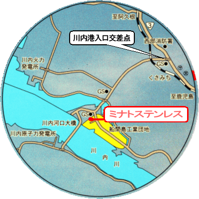 ・ミナトステンレスは、川内川河口にある船間島工業団地内にあります。